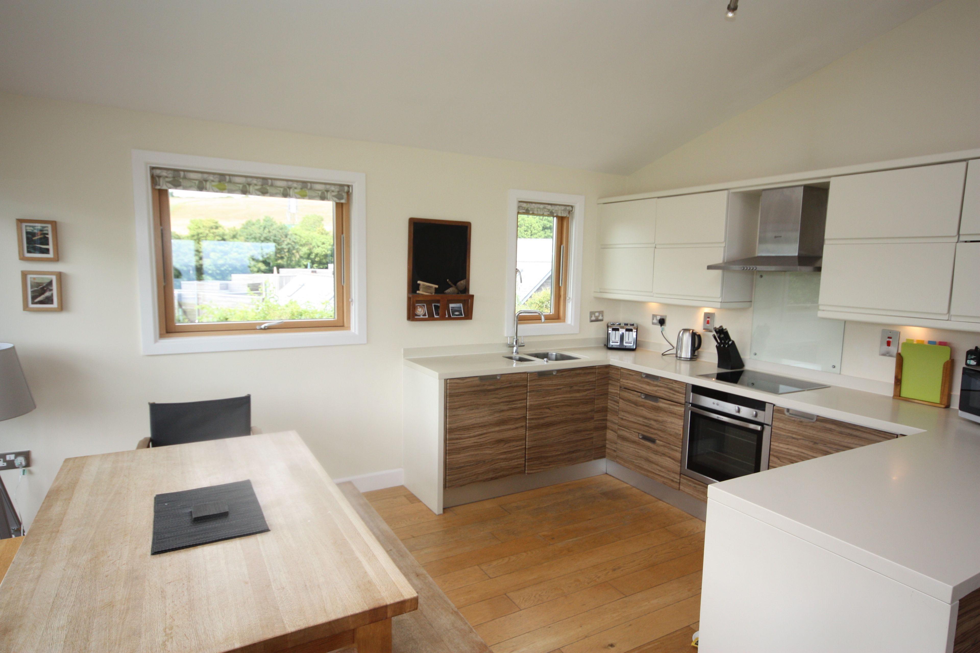The house is finished to a high specification with a designer kitchen and under-floor heating throughout. The commanding location of the house provides an ideal vantage point to watch boats sail by; from the decking in the summer months, or from the living room beside the stylish wood-burning stove during the winter.