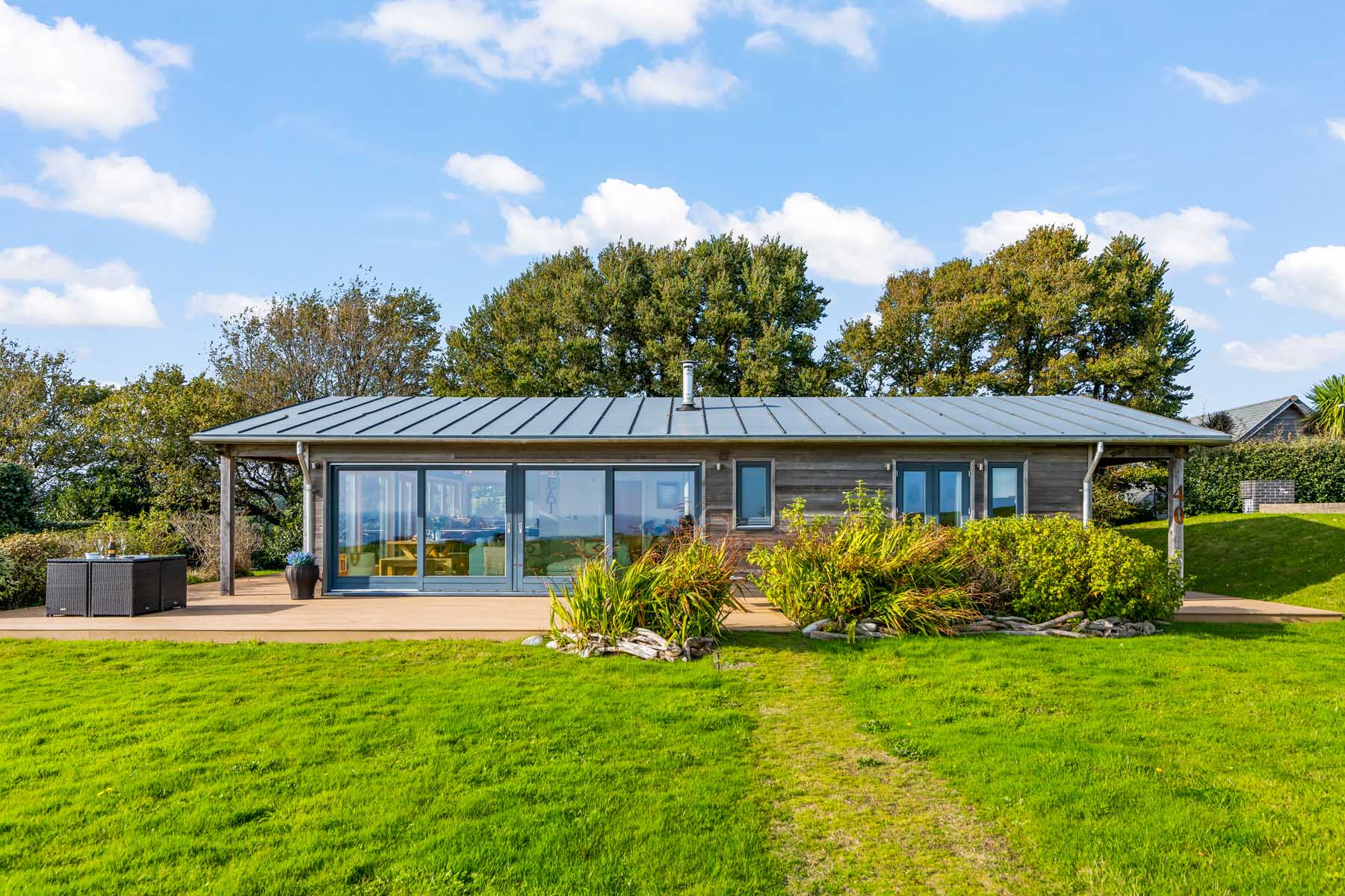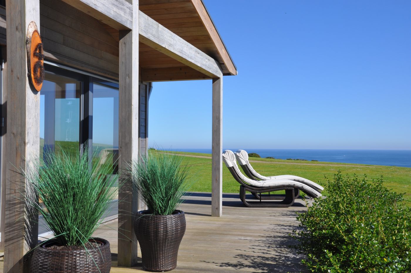 This contemporary luxury beach house has 3 bedrooms and 2 bathrooms. Situated with a panoramic sea view accessed by large sliding glass doors onto an extensive deck and grass area. The home is equipped to luxury 5 star rental standards plus a few individual touches to smooth the transition into holiday mode.