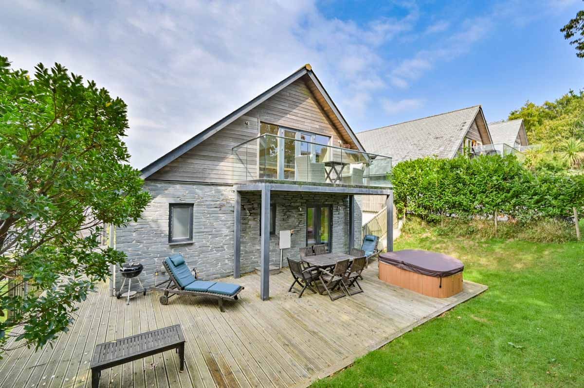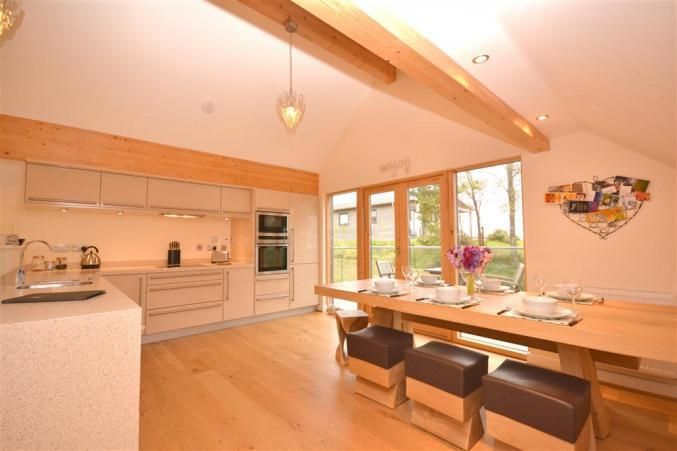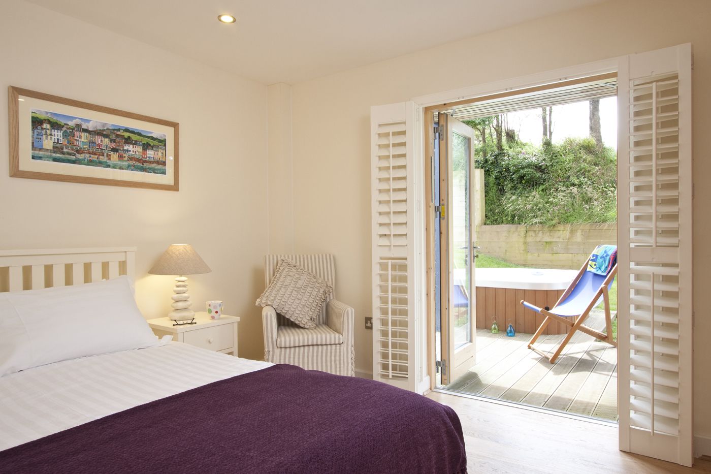 The large 8 seat dining table is perfect for family gatherings. Double French doors give access to a real suntrap of a balcony with sea views (partial). Outside, a hot tub provides an ideal place to relax and unwind after a busy day of exploring.