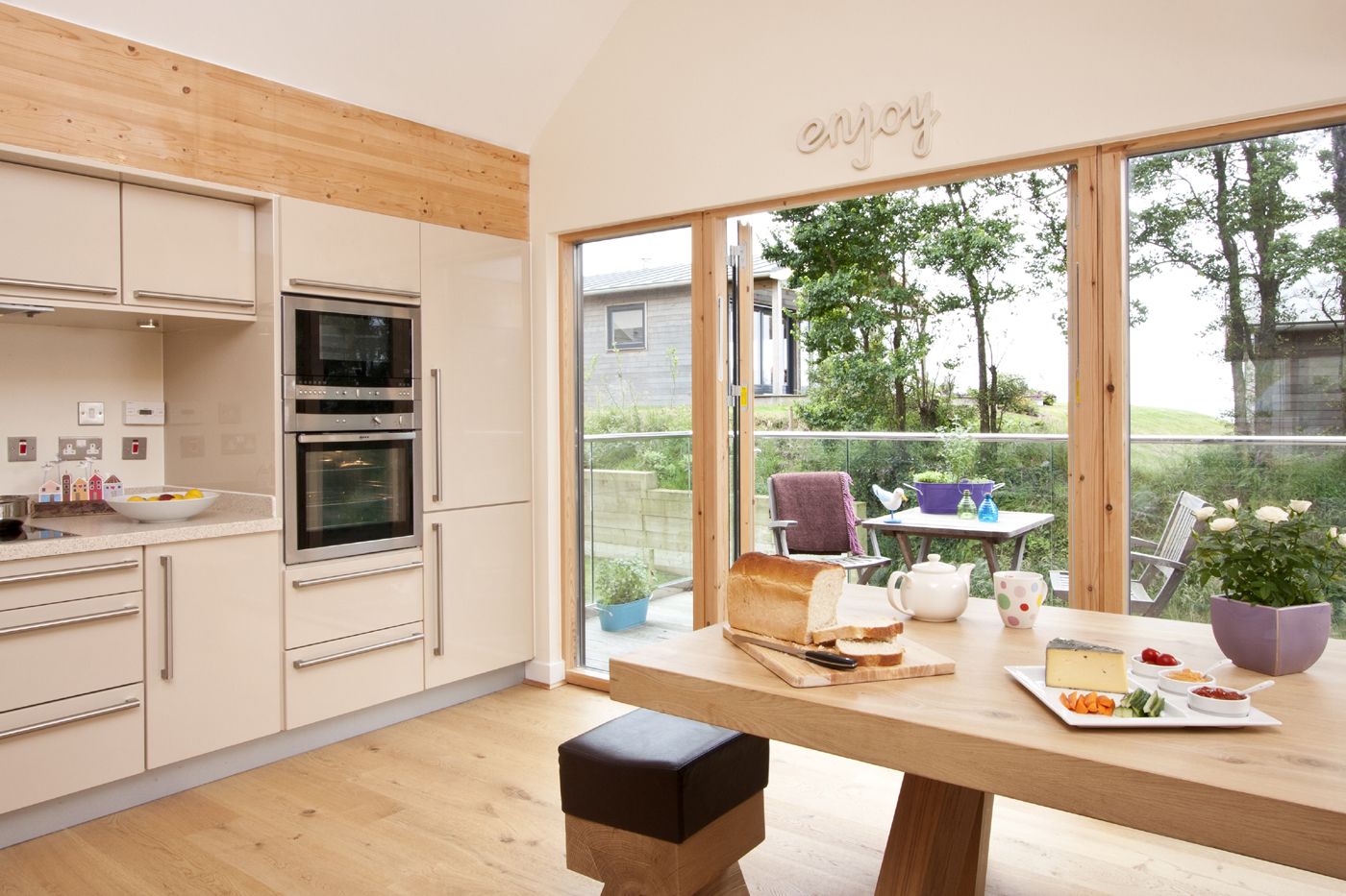 This contemporary four level three bedroom detached property, set at the top of the hillside section, is the perfect accommodation for your holiday. The home has been tastefully decorated and furnished and it is a real home from home. The Living room with its vaulted ceiling, huge panoramic windows/doors and full width glass balconies offers far reaching views over the development to the countryside beyond.