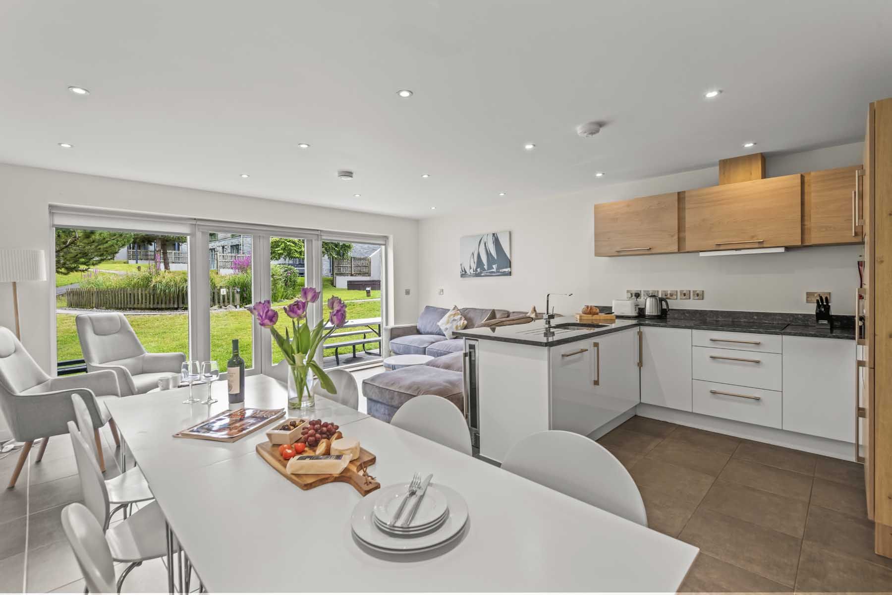 Discover 'Rock,' a remarkable 4-bedroom retreat with three en-suite shower rooms and a family bath/shower room. Enjoy uninterrupted views from the main bedroom's private outdoor deck, overlooking central gardens, an outdoor pool, and the countryside. This pet-friendly haven accommodates 8 guests (6 + 2) and offers elegant contemporary living with zone-controlled heating.