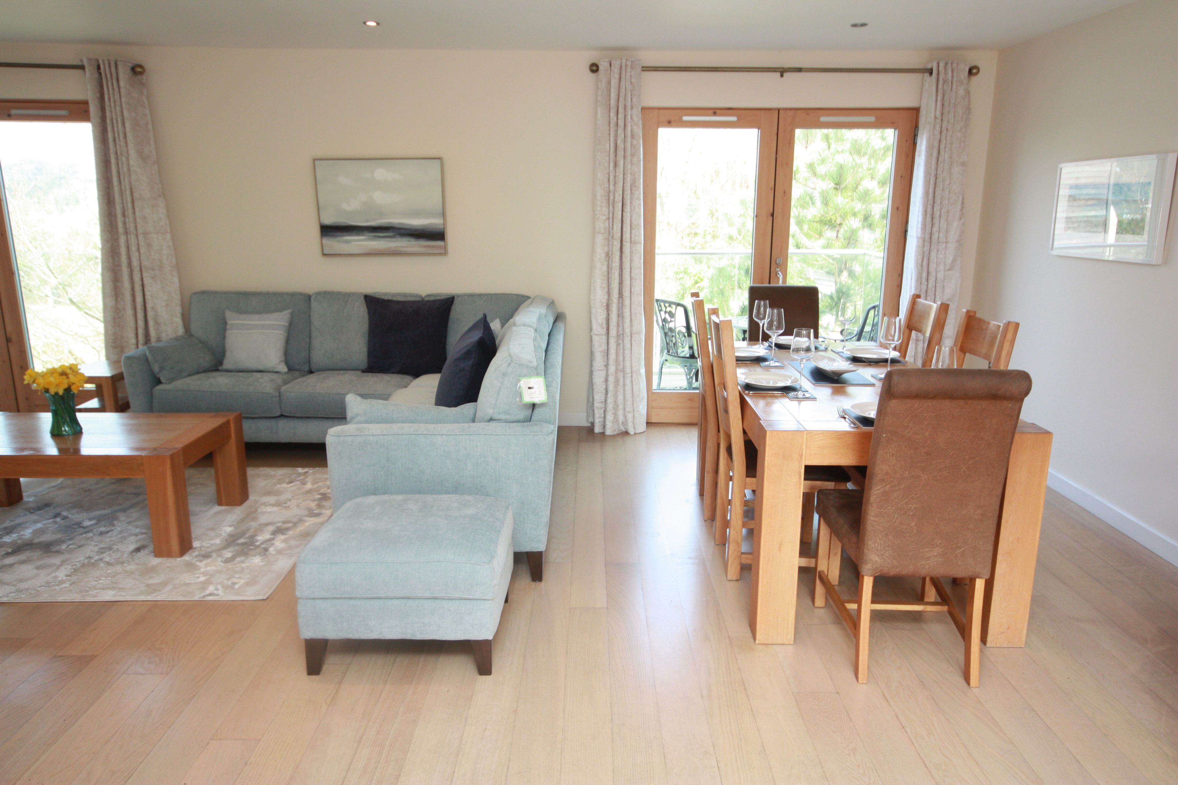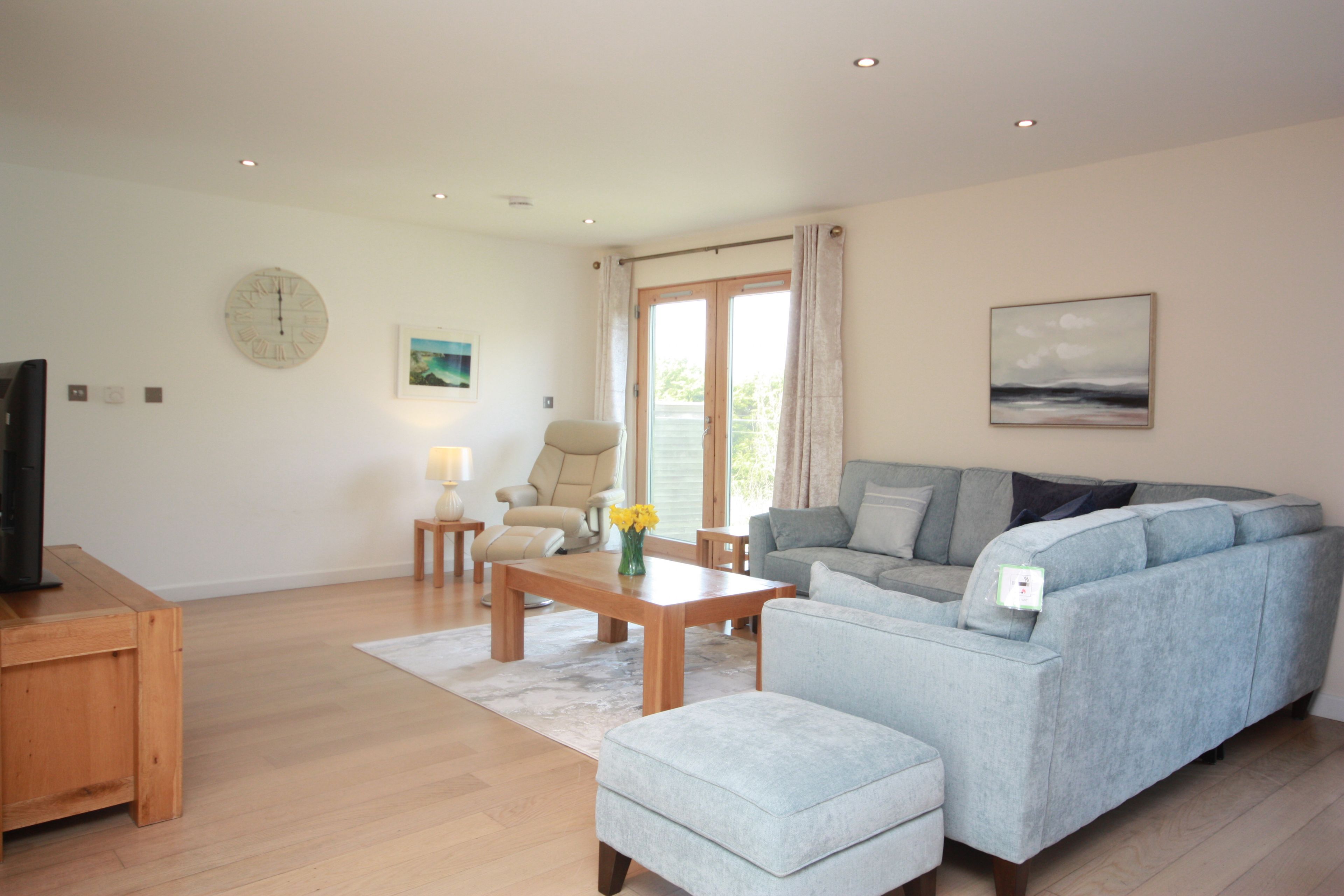 This striking detached property has three bedrooms on the ground floor, two of which have access to the patio, outdoor pool and gardens. The lounge, kitchen and dining area are on the first floor. The open plan arrangement of this level provides a fantastic living space to entertain and relax and has access, via double casement doors to a balcony with views of the gardens, outdoor pool and the countryside beyond.
