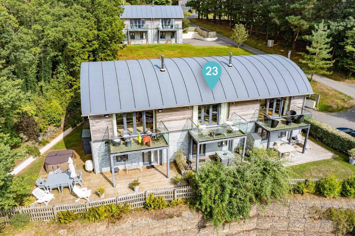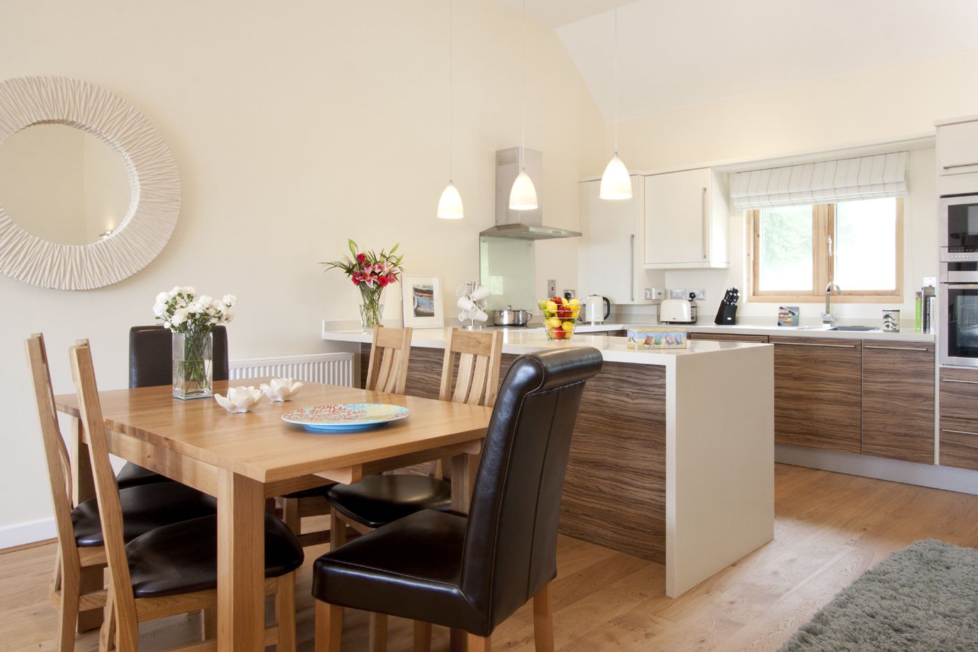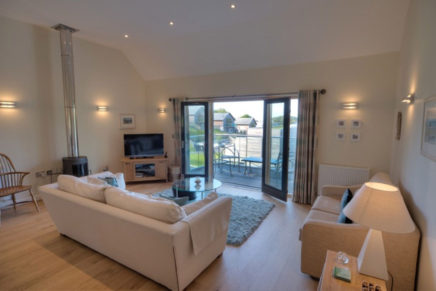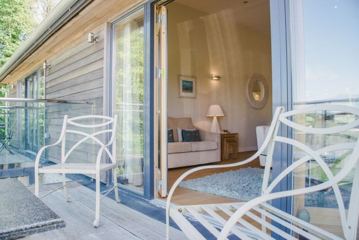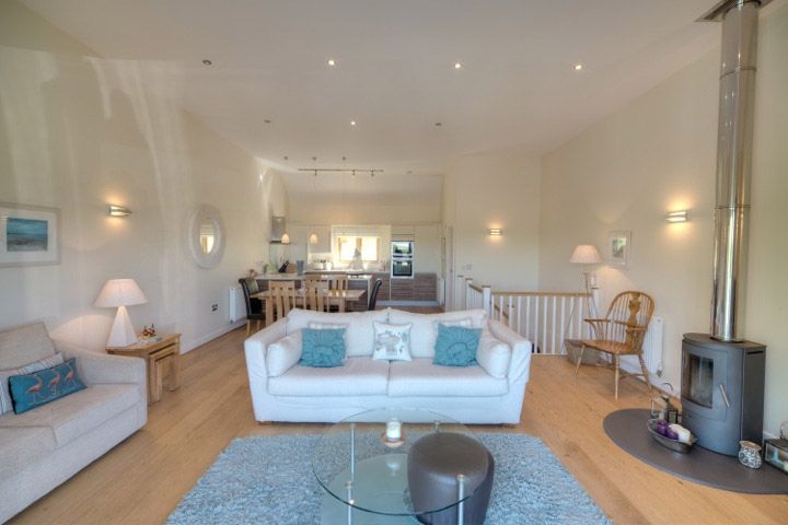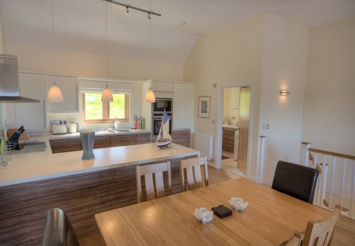 This fine contemporary (mid-terrace) home with level access has a vaulted ceiling to the first floor open plan lounge / dining / kitchen area creating a spacious family environment. The hillside views from here can be enjoyed from comfy sofas, or seats and table on the large south west facing balcony, enabling you to relax and enjoy all weathers.