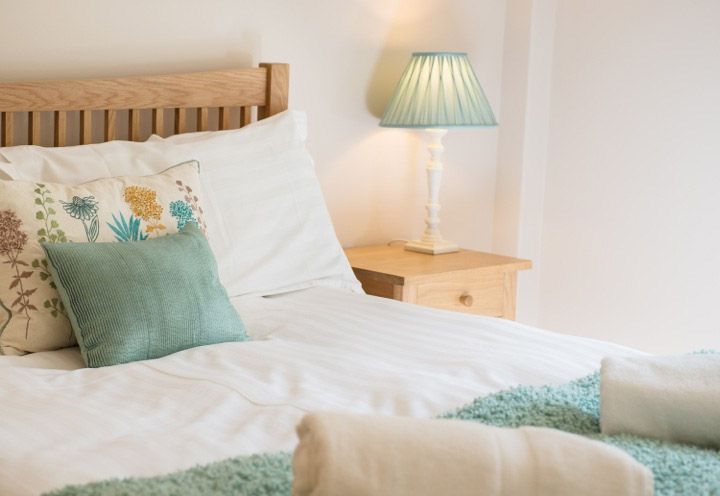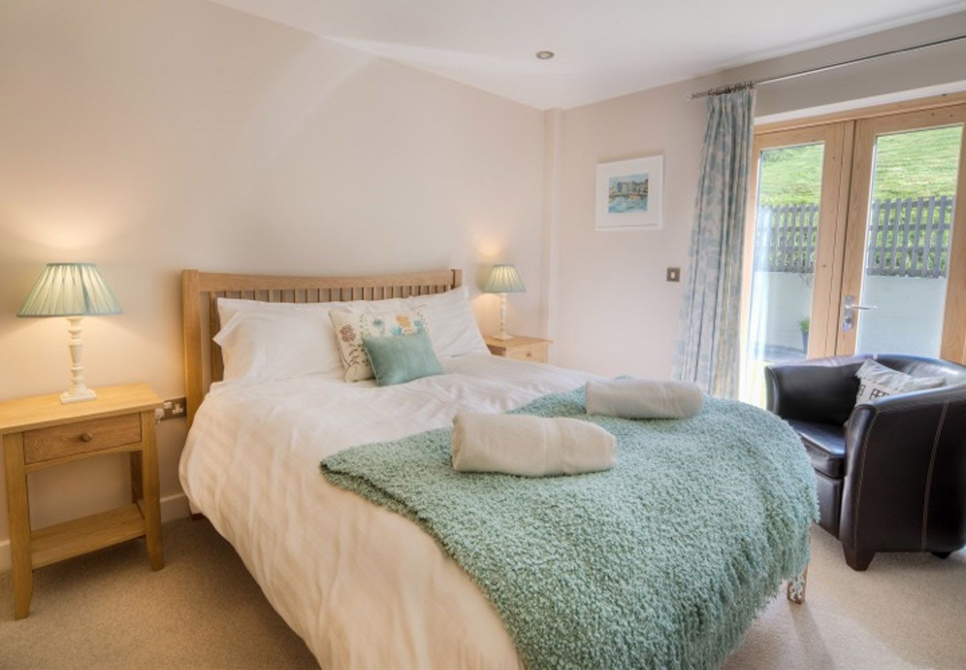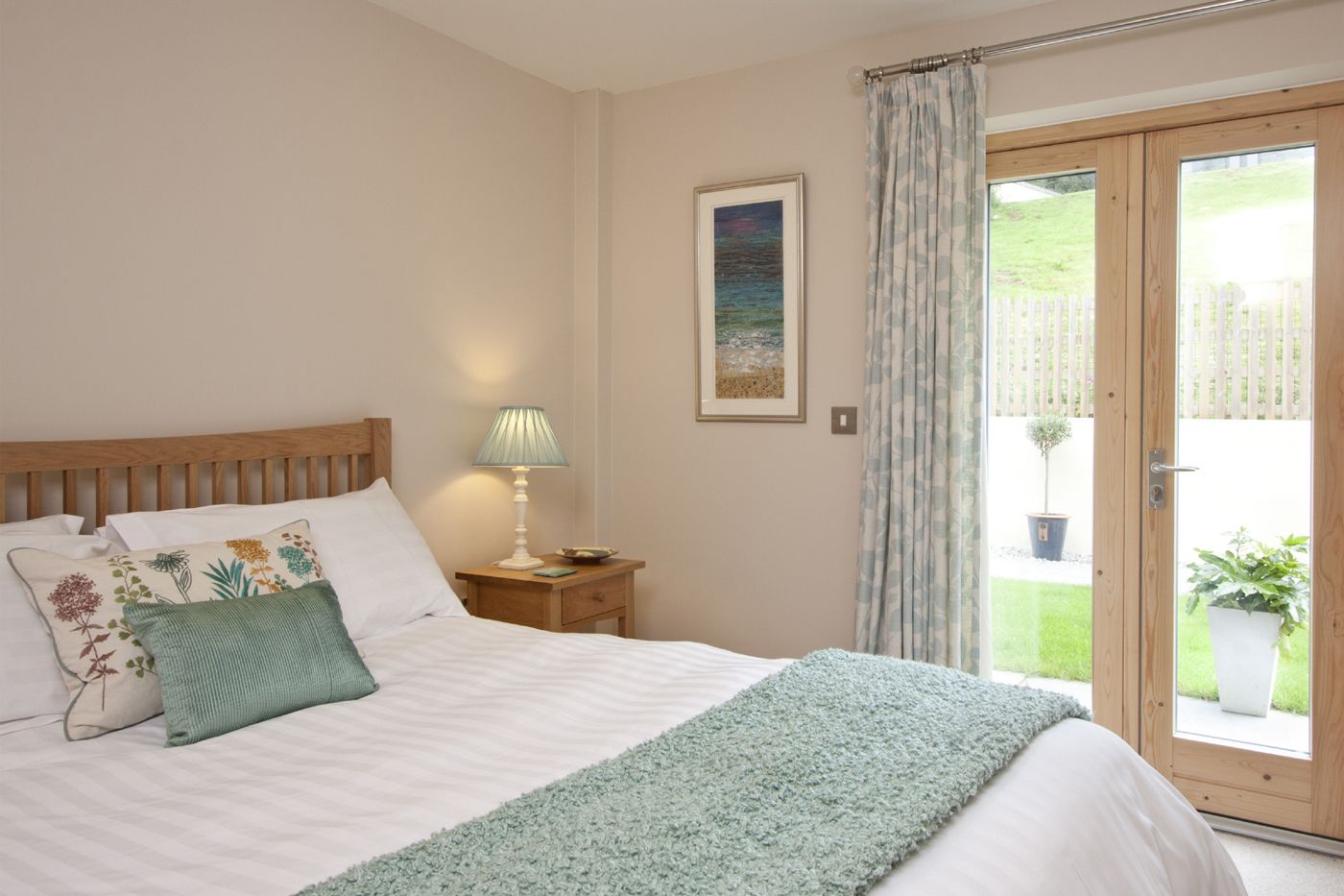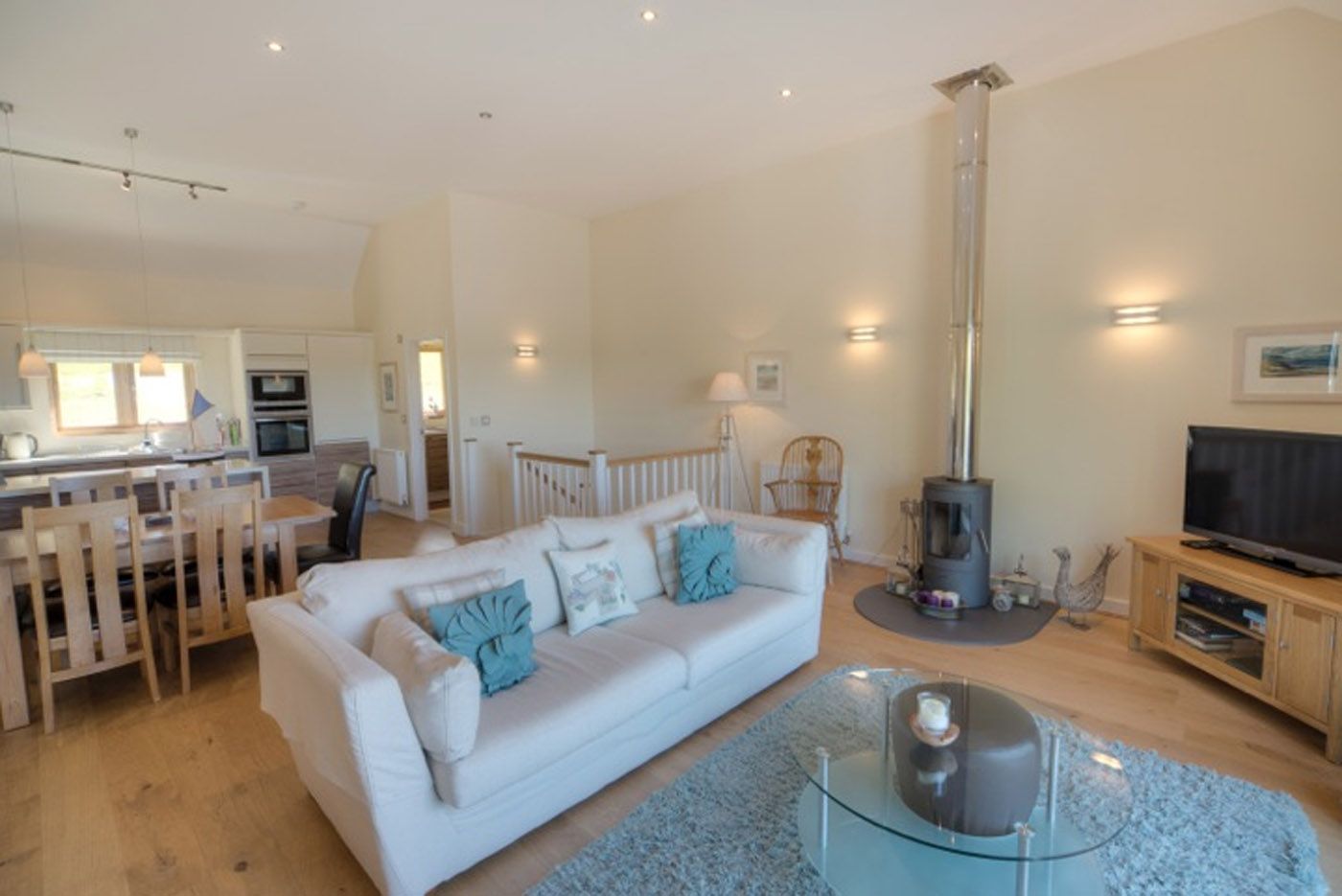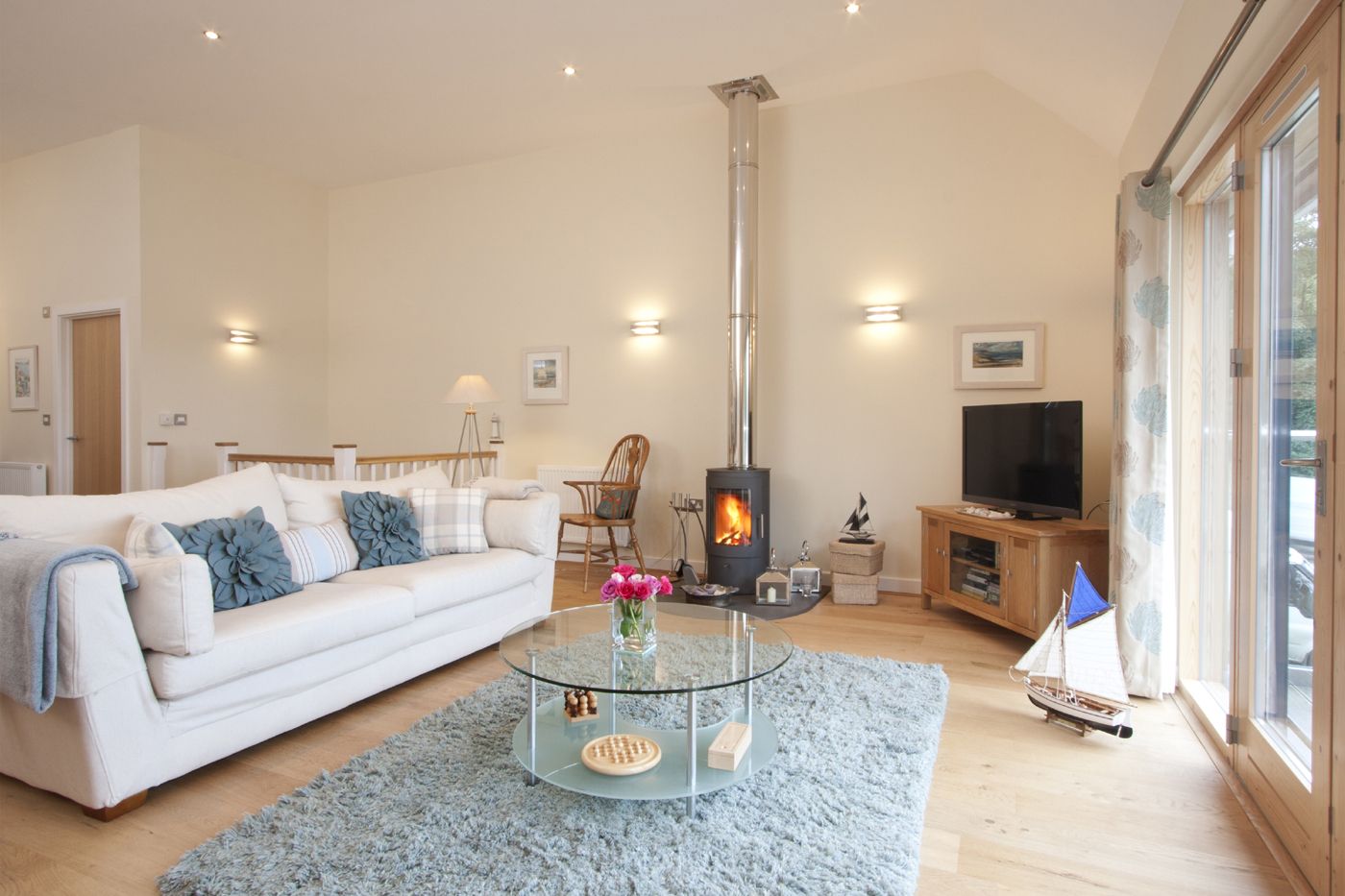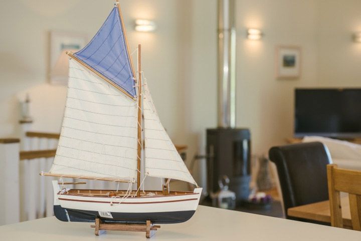 The woodburner warms up even the chilliest evenings, and for warmer days the leafy decking area with charcoal BBQ will draw you outside. The restful décor throughout reflects the colours of sea, sand, sky and hillside, complimented by the pictures and other decorations.