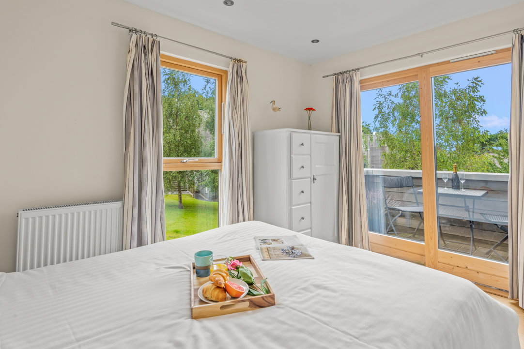 Inside, you’ll find a luxurious main bedroom with an en suite and a tastefully furnished balcony, perfect for morning coffees or sunset relaxation. There is also a comfortable twin bedroom, ideal for family or friends, and a cosy bunk bedroom complete with its own furnished balcony. A spacious family bathroom provides comfort and convenience for all guests.