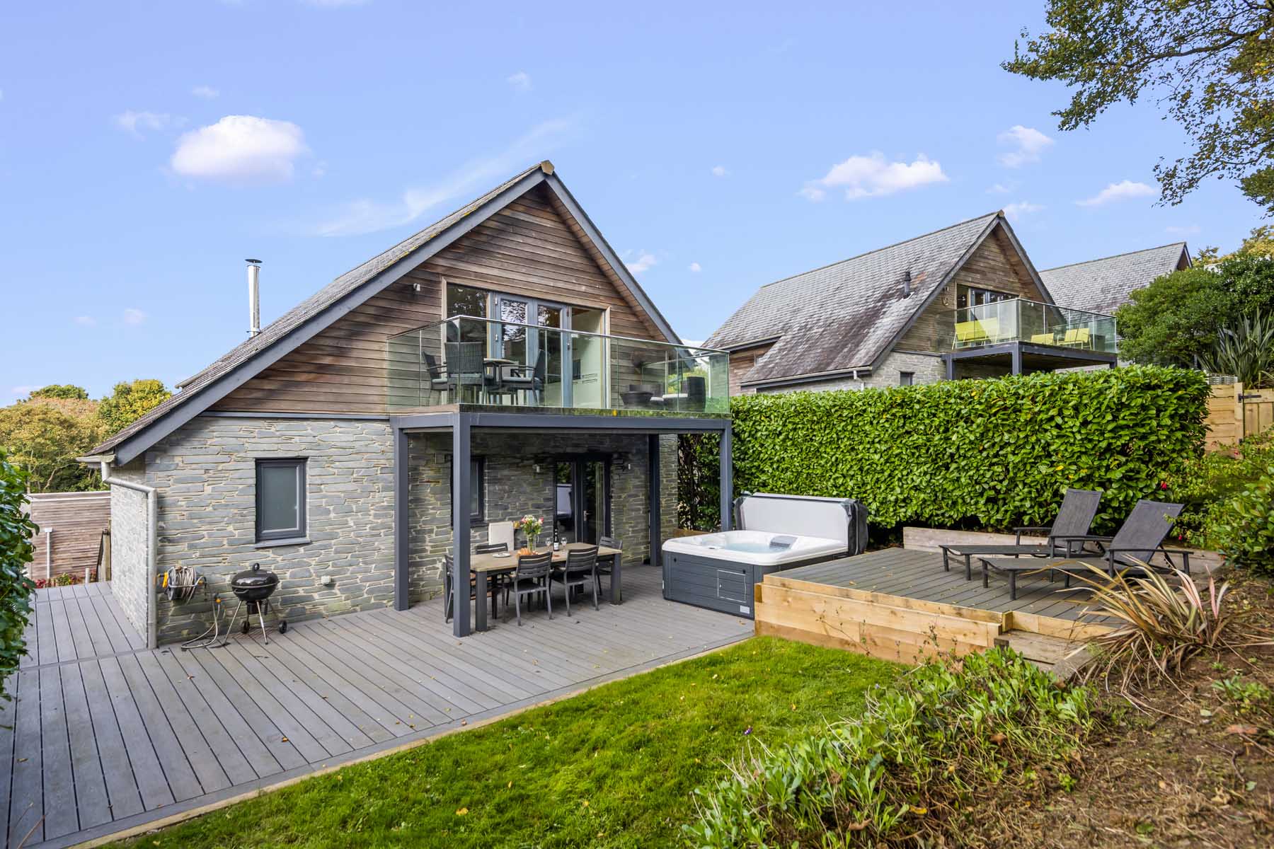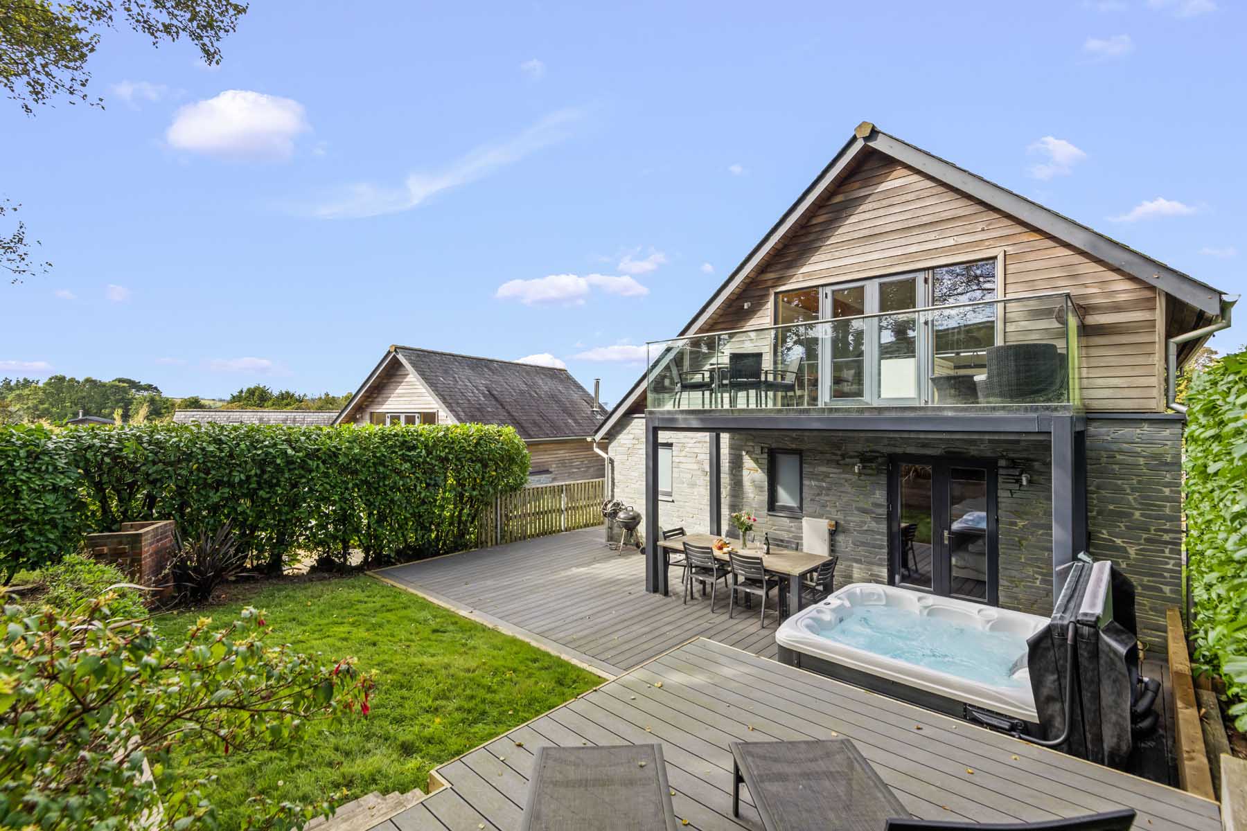 A large corner sofa offers ample seating for everyone, complemented by a cosy wood burner and stylish outdoor furniture. Thoughtfully chosen artwork and furnishings complete the elegant interior. Outside, the newly installed hot tub (spring 2025) is the perfect spot to relax and unwind after a day of exploring.